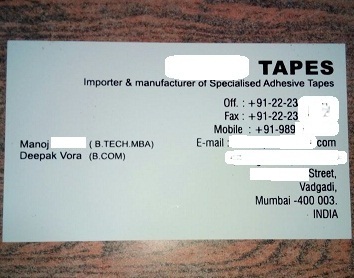 Tôi là Manoj ██████████, Giám đốc Công ty ██████████ Tapes có trụ sở tại thành phố Mumbai, Ấn Độ.