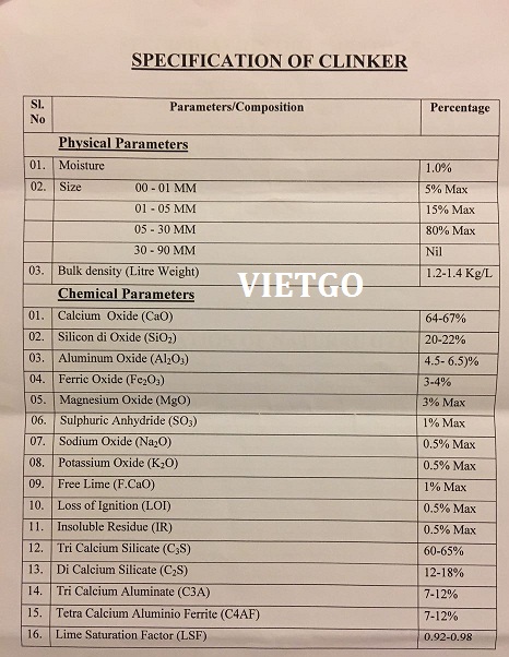 Hiện tại chúng tôi đang có nhu cầu nhập khẩu clinker để bán lại cho khách hàng của mình với đơn hàng chi tiết như sau