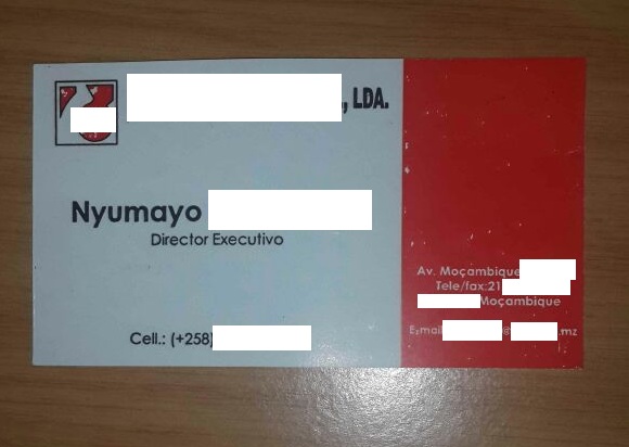 Danh thiếp của ông Nyumayo