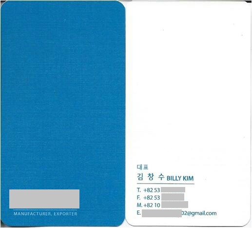 Danh thiếp cá nhân của ông Kim Billy và giấy phép đăng ký kinh doanh của công ty ██████████