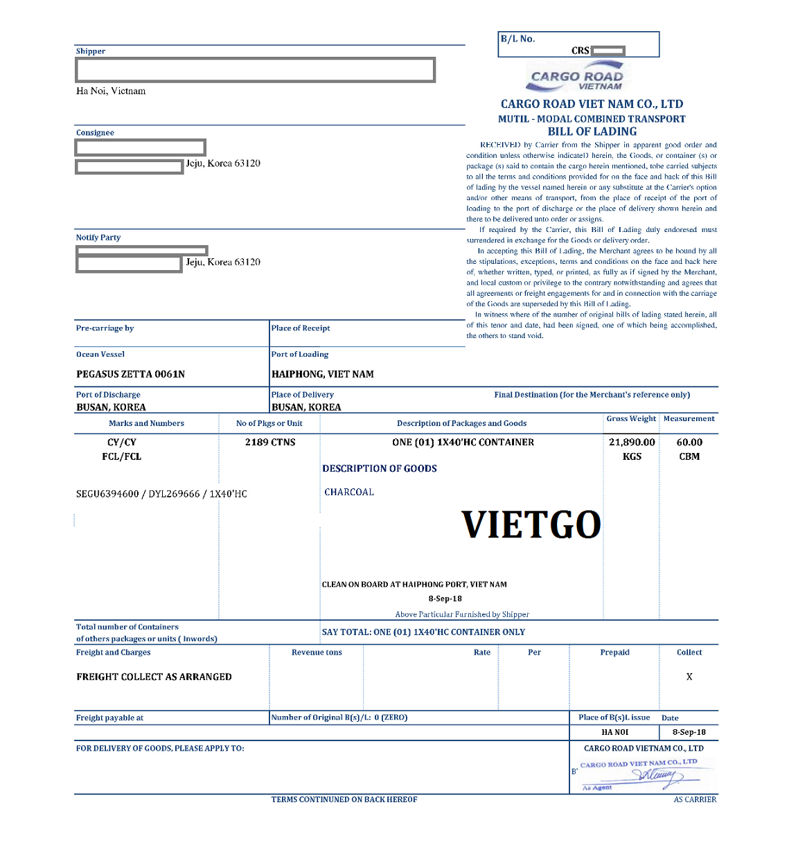 Ngoài ra, vị khách đặc biệt này còn gửi chúng tôi bản Vận đơn (Bill of Landing) và cả Hóa đơn (Invoice) ông nhập khẩu từ Việt Nam cách đây mấy ngày (08/09/2018) với mặt hàng là than củi. Quý vị qua đây cũng có thể thấy rõ ông Yang là một vị khách với nhiều kinh nghiệm trong việc nhập khẩu hàng hóa. Mong rằng Quý nhà cung cấp sẽ sớm gửi báo giá viên nén mùn cưa tốt nhất cho ông Yang.