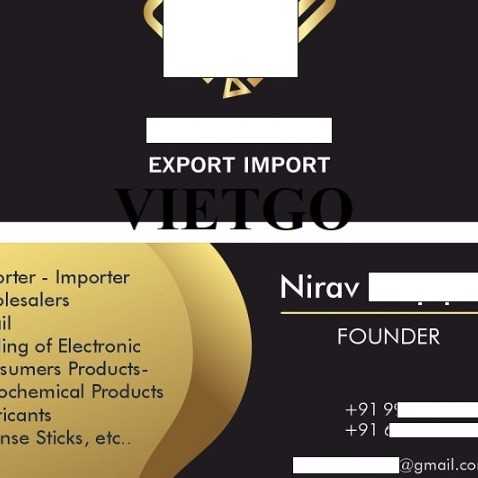 Qua thiện chí hợp tác tích cực và thân thiện, VIETGO tin rằng đây sẽ là cơ hội hứa hẹn mang đến mối quan hệ hợp tác tốt đẹp giữa ông Nirav với vị đại diện thương mại phù hợp. Ông rất mong chờ có thể tìm kiếm đối tác thật sự đáng tin cậy cho lần hợp tác này. Vậy, Quý doanh nghiệp quan tâm đến kế hoạch đầu tư và có thể đáp ứng được các yêu cầu của vị khách hàng vui lòng liên hệ với ông qua thông tin dưới đây: