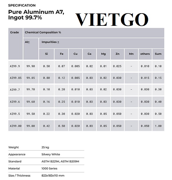 Trước đó, tôi đã liên hệ với VIETGO để có thể tìm kiếm nhà cung cấp cho đơn hàng xuất khẩu nhôm thỏi sang thị trường Trung Quốc và Thổ Nhĩ Kỳ. Tuy nhiên, tôi vẫn chưa tìm được nhà cung cấp phù hợp. Hiện tại, tôi đang giúp khách hàng tại Hàn Quốc tìm nguồn cung ứng cho sản phẩm nhôm thỏi A7 xuất khẩu sang thị trường nước này. Chính vì vậy, tôi mong muốn VIETGO sẽ tiếp tục hỗ trợ tôi có thể tìm được nhà cung cấp xuất khẩu được đơn hàng trên. Tôi hy vọng sẽ sớm nhận được báo giá từ các nhà cung cấp của VIETGO để có thể tiến hành hợp tác ngay”.