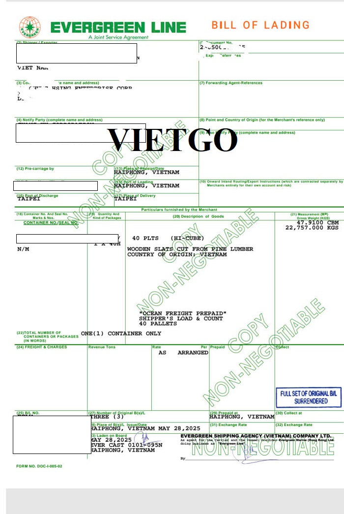 Dưới đây là hình ảnh các bản vận đơn vị khách hàng đã nhập khẩu thành công sản phẩm gỗ thông từ cảng Hải Phòng, Việt Nam đến cảng Taipei, Đài Loan.