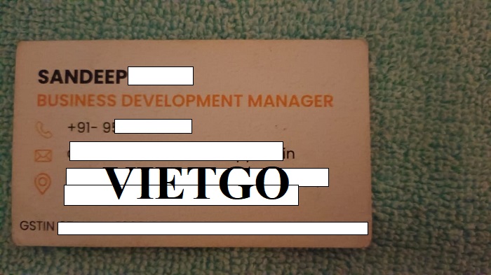 Qua cuộc trò chuyện cũng như trao đổi kỹ lưỡng về đơn hàng, Vietgo nhận thấy ông Sandeep là một vị khách hàng tiềm năng và là cơ hội để hợp tác lâu dài với các Nhà cung cấp châu Á. Vậy nên, Quý nhà cung cấp nào có thể đáp ứng được yêu cầu của vị khách hàng thân thiện này, vui lòng liên hệ và gửi báo giá cho ông qua trong thời gian sớm nhất có thể qua địa chỉ email dưới đây.