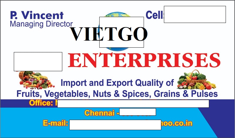 Hiện nay, ông Vincent đang có nhu cầu nhập khẩu hành tím số lượng lớn về thị trường Ấn Độ để phục vụ cho hệ thống phân phối của ██████████. Ông đặc biệt quan tâm đến những nhà cung cấp có thể cung ứng hành tím chất lượng cao, củ đồng đều, không hư hỏng, đáp ứng đúng yêu cầu về an toàn thực phẩm và đóng gói tiêu chuẩn. Với sự phát triển mạnh mẽ của ngành thực phẩm và nhu cầu tiêu dùng ngày càng tăng tại Ấn Độ, hành tím là một trong những mặt hàng quan trọng và được tiêu thụ thường xuyên. Vì vậy, ông Vincent mong muốn sớm nhận được báo giá chi tiết từ các nhà xuất khẩu tiềm năng, để nhanh chóng xúc tiến đơn hàng và tiến tới thiết lập mối quan hệ hợp tác lâu dài.