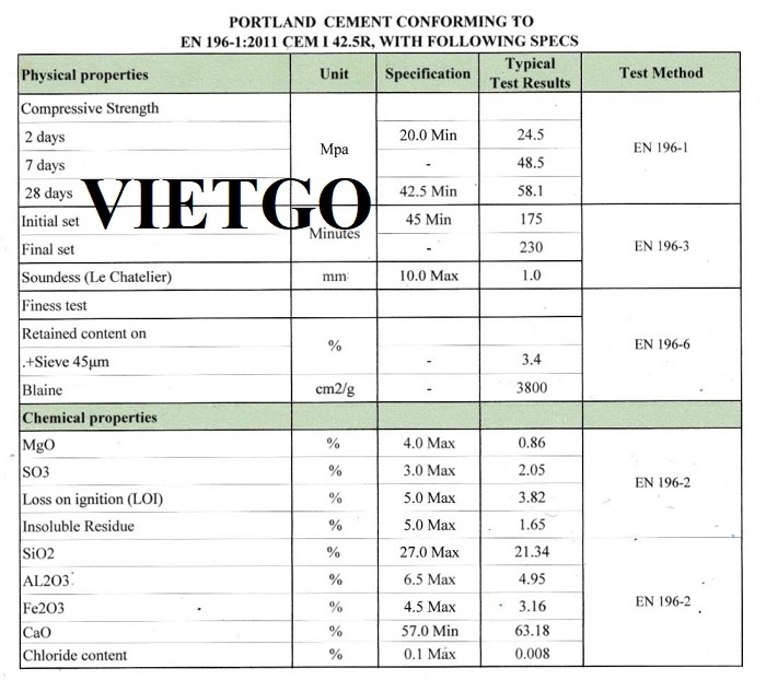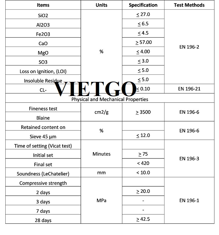 - Về đơn hàng: Hiện tại, khách hàng của ông Meftah tại Oman có nhu cầu nhập khẩu xi măng Portland mác 42.5N và 42.5R cho một dự án xây dựng. Vì vậy, vị khách hàng đã liên hệ với VIETGO để có thể nhanh chóng kết nối với các nhà sản xuất có thể thực hiện đơn hàng này.