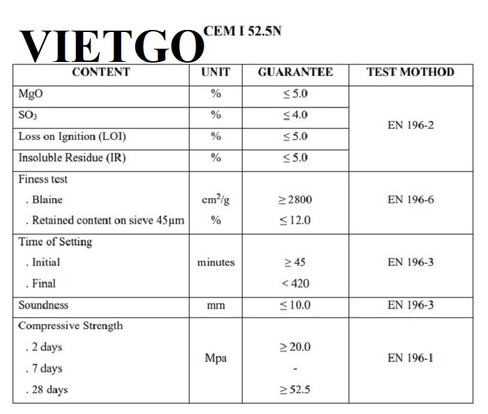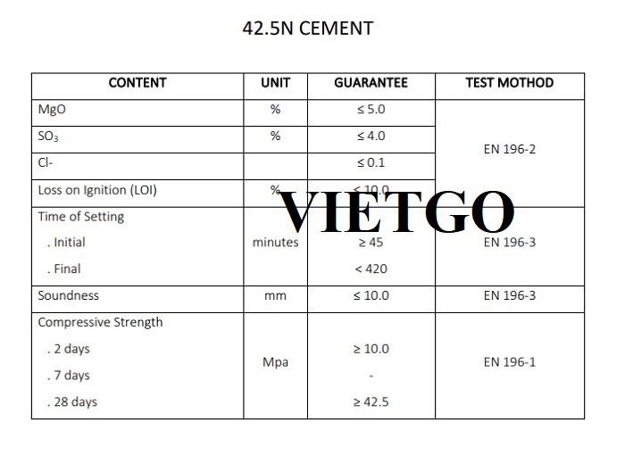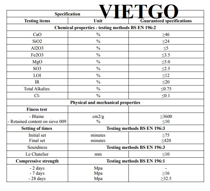Yêu cầu: Xi măng Portland loại 1 có chất lượng tốt, mác 32,5, 42,5 và 52,5