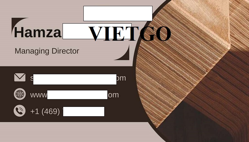 Vừa qua, ông Hamza – đại diện công ty ██████████ tại Hoa Kỳ đã liên hệ với VIETGO nhằm nhập mua sản phẩm gỗ dán cho hoạt động kinh doanh của mình tại Ả Rập Xê Út.
