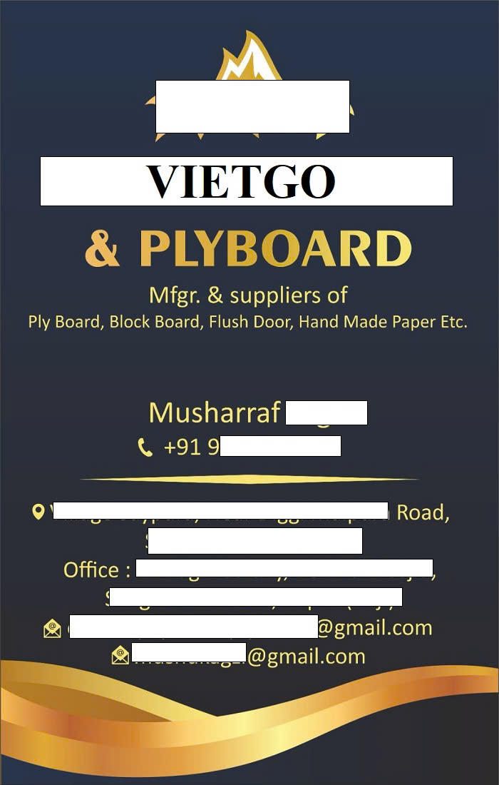 Vừa qua, ông Musharraf, Chủ sở hữu kiêm Giám đốc điều hành của công ty ██████████ đã liên hệ với VIETGO để tìm kiếm nhà cung cấp ván bóc bạch đàn cho dự án của công ty mình.