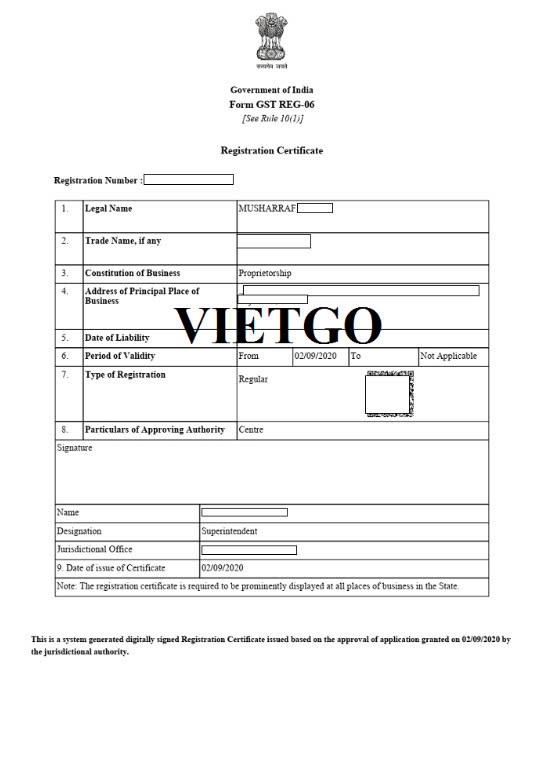 Hình ảnh chứng nhận đăng ký kinh doanh của công ty vị khách hàng