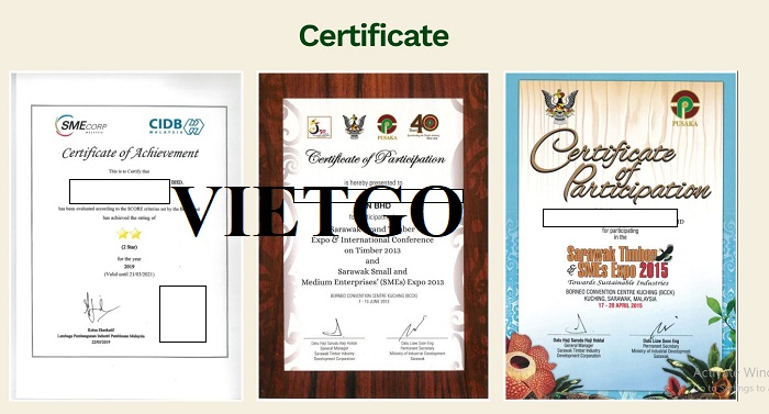 Hình ảnh chứng nhận của công ty vị khách hàng