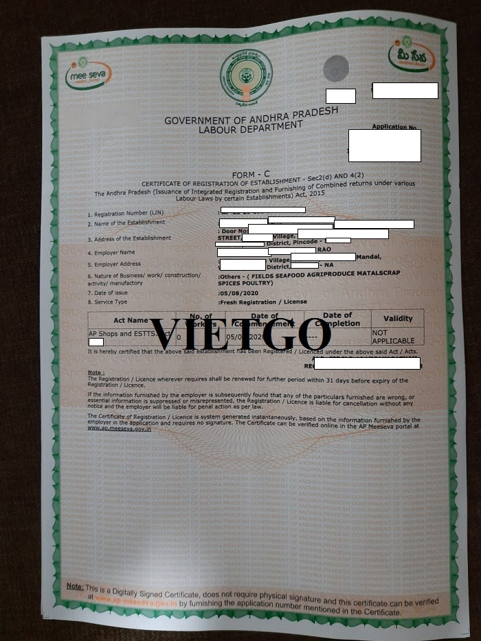 Hình ảnh đăng kí kinh doanh công ty của vị khách hàng