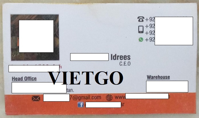 Ông ██████████ Idrees - vị khách hàng của VIETGO lần này đại diện mua hàng đến từ Pakistan. Hiện tại ông đang là Giám đốc của công ty ██████████, có trụ sở tại Karachi, Pakistan. Đây là doanh nghiệp chuyên kinh doanh và phân phối các mặt hàng gia vị, đậu hạt, muối và trái cây sấy khô. Với nhiều năm hoạt động trên thị trường nội địa, công ty đã xây dựng được mạng lưới phân phối rộng khắp và danh tiếng uy tín trong ngành thực phẩm. Ông cũng đóng vai trò cầu nối giữa khách hàng của mình và các nhà cung cấp tiềm năng trên thế giới để mở rộng mối quan hệ hợp tác.