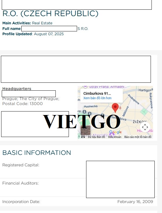Đại diện Công ty: ██████████.S.R.O.