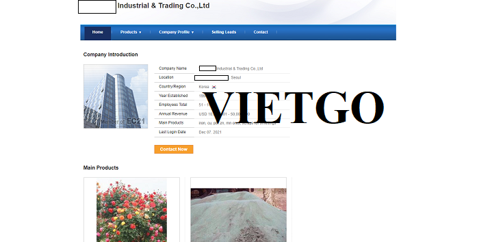 Vừa qua ông Kim đại diện công ty ████████████████████đã liên hệ với VIETGO trao đổi về mong muốn tìm kiếm nhà cung cấp cho đơn hàng nhập khẩu cá cơm khô sang thị trường Hàn Quốc nhằm phục vụ cho nhu cầu kinh doanh của công ty ông
