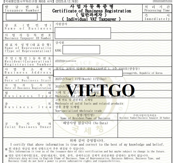 Đăng ký kinh doanh của vị khách hàng