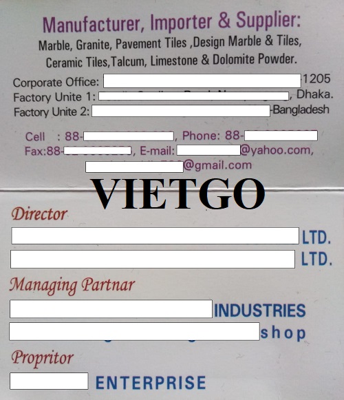 Chia sẻ với VIETGO, ông Mezba cho biết thêm: “Hiện tại, tôi đảm nhiệm vị trí Giám đốc của ██████████ Công ty chuyên kinh doanh và phân phối các sản phẩm đá granite, đá marble, gạch ốp lát, bột đá vôi và bột đá dolomite. Bên cạnh đó, tôi cũng trực tiếp quản lý và điều hành một số doanh nghiệp khác như ██████████ và Modina Enterprise.