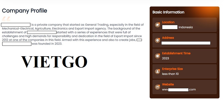 Được thành lập vào năm 2023, ██████████ khởi đầu là một doanh nghiệp Thương mại Tổng hợp, tập trung vào các lĩnh vực như cơ khí – điện, nông nghiệp, điện tử và dịch vụ đại lý xuất nhập khẩu. Công ty được xây dựng trên nền tảng kinh nghiệm tích lũy lâu năm của ông Harahap, với định hướng phát triển bền vững, minh bạch và đề cao sự ổn định trong hợp tác dài hạn. PT. TRANS OTO TECH luôn tìm kiếm các đối tác có năng lực sản xuất tốt, khả năng cung ứng đều đặn và mức giá cạnh tranh.