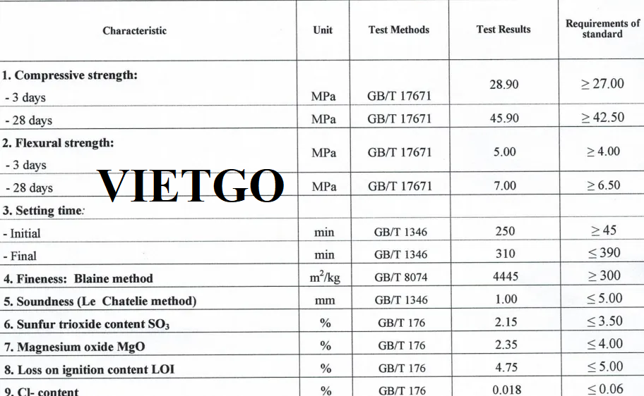 Yêu cầu: Xi măng Portland mác 42.5 ASTM C-150 có chất lượng tốt