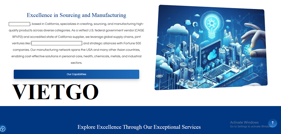 Với kinh nghiệm trong việc kết nối sản xuất và phân phối tại thị trường Mỹ, ██████████ không ngừng mở rộng danh mục sản phẩm và nâng cao năng lực cung ứng. Công ty đề cao các tiêu chuẩn về chất lượng, tuân thủ quy định thương mại, cũng như tính minh bạch và hiệu quả trong hợp tác với các đối tác trong và ngoài nước.