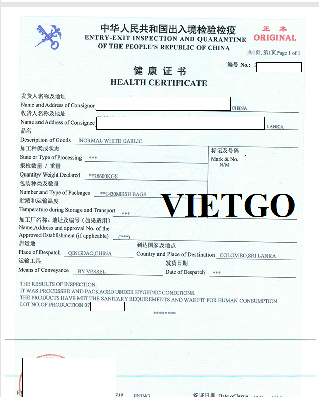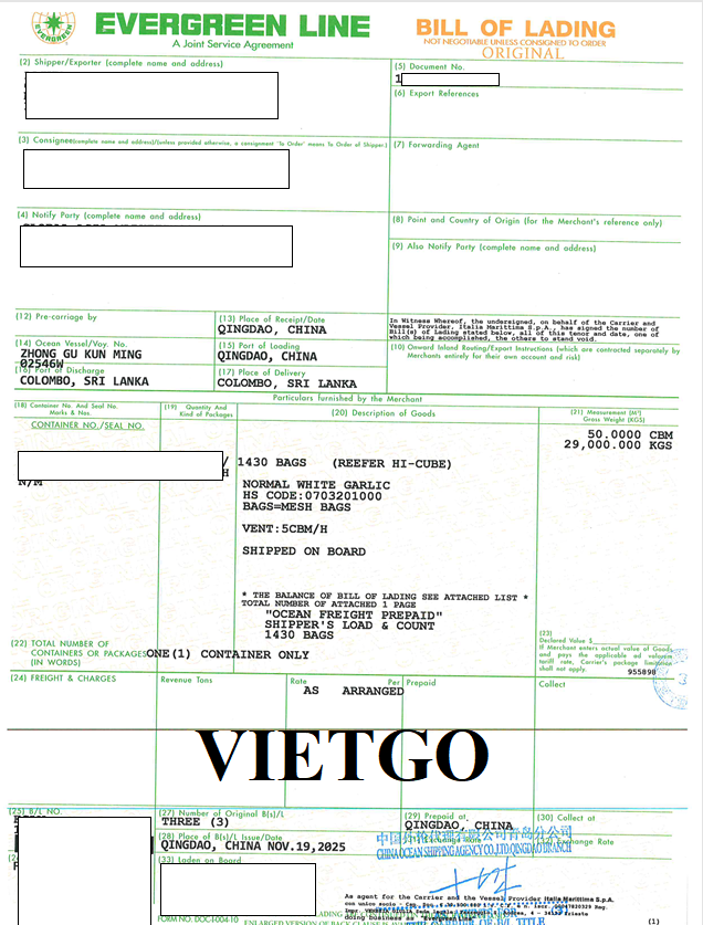Hình ảnh bản vận đơn tỏi trắng của công ty khách hàng tháng 9/2025