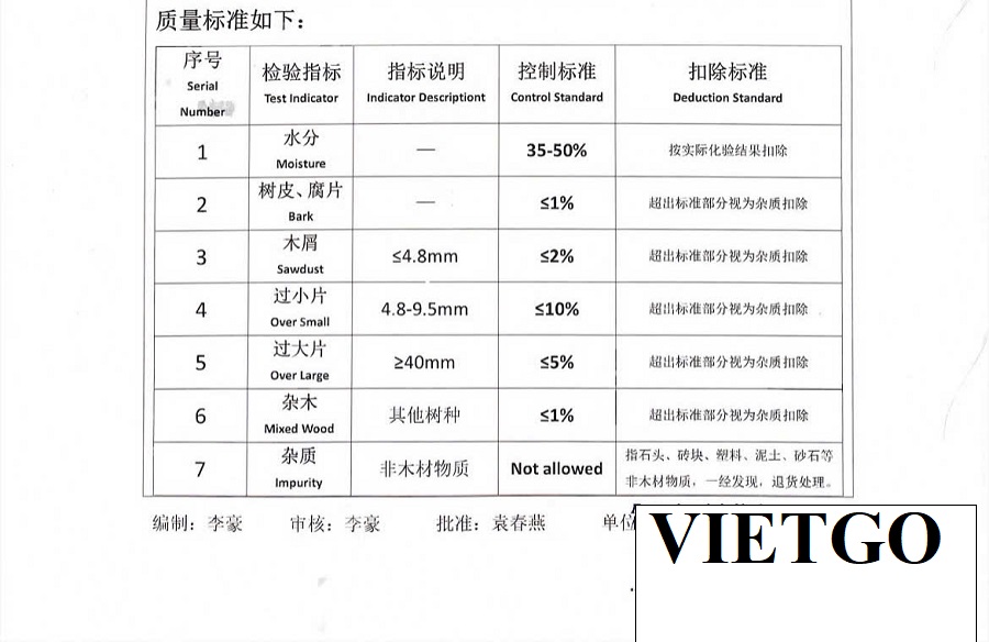 VIETGO xin gửi tới Quý nhà cung cấp thông tin về đơn hàng gỗ vụn từ vị khách tiềm năng, ông Li.