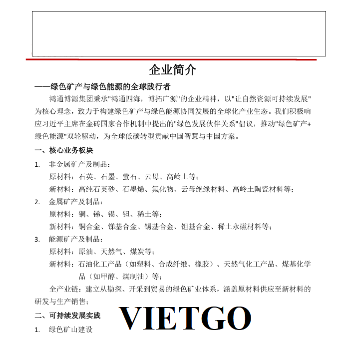 Khi trò chuyện và trao đổi về nhu cầu nhập khẩu mặt hàng gỗ vụn với VIETGO, ông Li chia sẻ: “██████████ - công ty chúng tôi đã nhanh chóng khẳng định vị thế vững chắc tại Trung Quốc, trở thành một trong những đơn vị tiên phong trong lĩnh vực kinh doanh sản phẩm năng lượng, phi kim loại và kim loại màu như: đồng, thiếc, thạch anh... Với tầm nhìn chiến lược hướng đến sự mở rộng và phát triển bền vững, chúng tôi đã đạt được nhiều thành công trong việc xây dựng và triển khai các dự án quy mô lớn. Hiện nay, chúng tôi tiếp tục đẩy mạnh các kế hoạch mở rộng, nâng cao năng lực hoạt động nhằm đáp ứng tốt hơn nhu cầu thị trường.