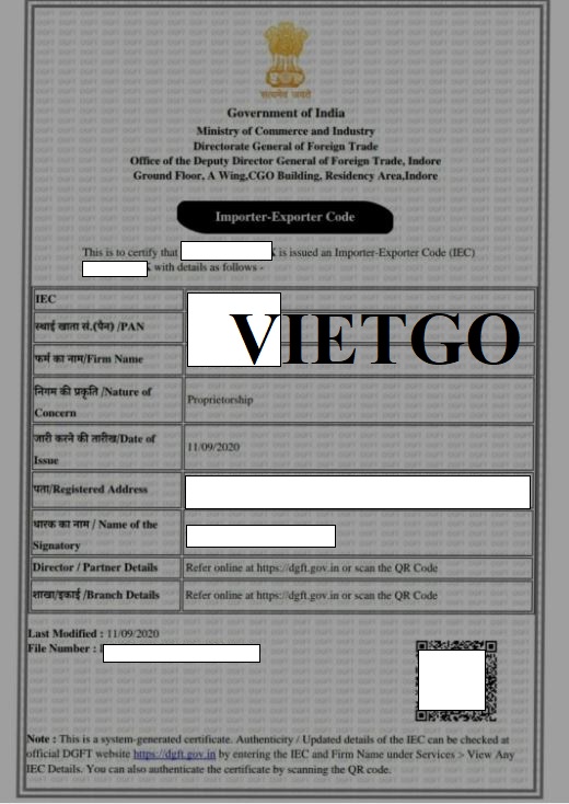 Địa chỉ công ty: ██████████, Ấn Độ