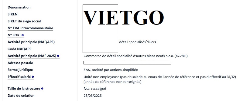 Địa chỉ công ty: ██████████, Pháp