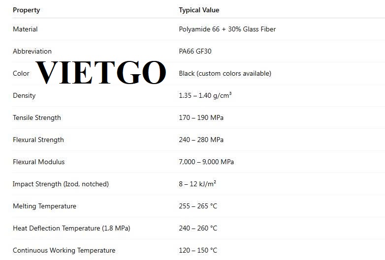 Loại nhựa: PA 66 30% GF