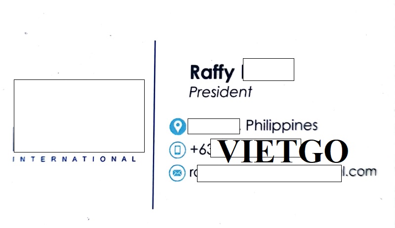 Làm việc kịp thời và hiệu quả nhất để có thể đáp ứng nhu cầu từ khách hàng và nhà cung cấp luôn là tiêu chí được đặt ra hàng đầu trong môi trường làm việc của ██████████. Tại đây, công ty từng không ít lần nhập khẩu nhiều mặt hàng nông sản khác nhau để thỏa mãn yêu cầu đa dạng của khách hàng trong nước. Nhu cầu tiêu thụ tại đây luôn ở mức cao. Có thể nói rằng, Philippines là một trong những thị trường nhập khẩu tiềm năng cho nhiều mặt hàng nông sản, đặc biệt là gạo và những sản phẩm nông sản tươi sống. Ông Raffy rất mong muốn thông qua dịch vụ của VIETGO, ông sẽ được tham gia vào mạng lưới kết nối với các nhà cung cấp sản phẩm nông sản tại Việt Nam.