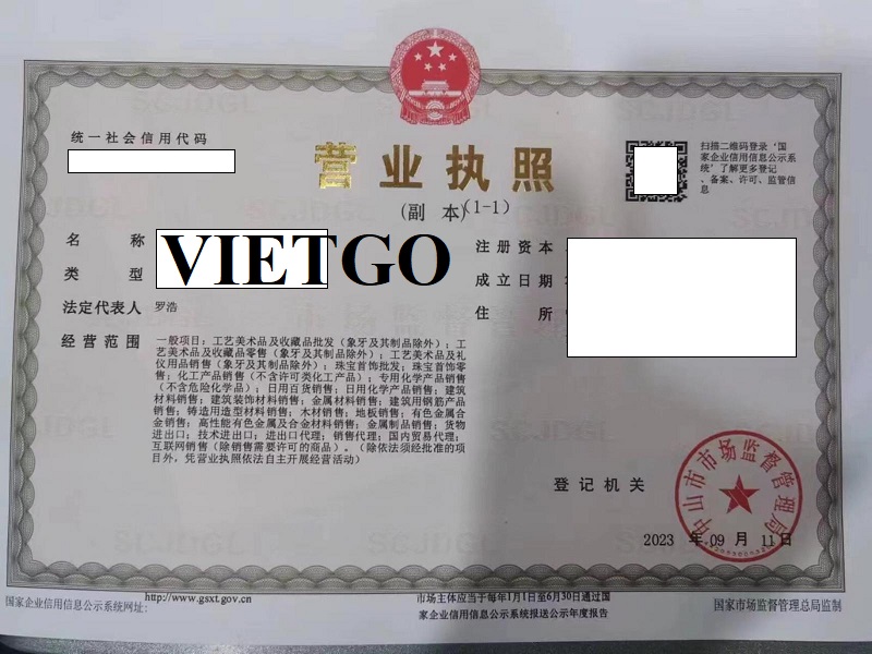 Hình ảnh đăng kí kinh doanh của công ty vị khách hàng