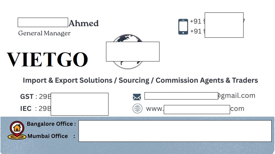 Trong quá trình tìm kiếm đối tác phù hợp, ông Ahmed rất mong muốn nhận được sự hỗ trợ từ VIETGO – đơn vị uy tín trong việc kết nối doanh nghiệp xuất khẩu Việt Nam với các nhà nhập khẩu quốc tế. Với mạng lưới nhà cung cấp rộng khắp và kinh nghiệm xúc tiến thương mại hiệu quả, VIETGO được kỳ vọng sẽ giúp ông Ahmed tiếp cận được những nhà cung cấp nghệ khô nguyên củ đáng tin cậy tại Việt Nam. Thông qua VIETGO, ông Ahmed hy vọng có thể xây dựng mối quan hệ hợp tác bền vững, lâu dài, mang lại lợi ích cho cả hai bên. Việc kết nối thành công không chỉ giúp ██████████ mở rộng nguồn hàng ổn định mà còn góp phần đưa nông sản Việt Nam tiếp cận sâu hơn với thị trường Ấn Độ đầy tiềm năng.