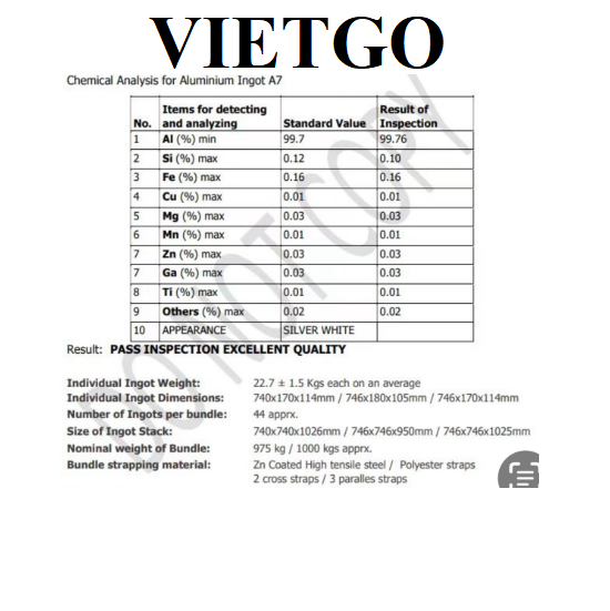 Yêu cầu: Thỏi nhôm A7 có chất lượng tốt