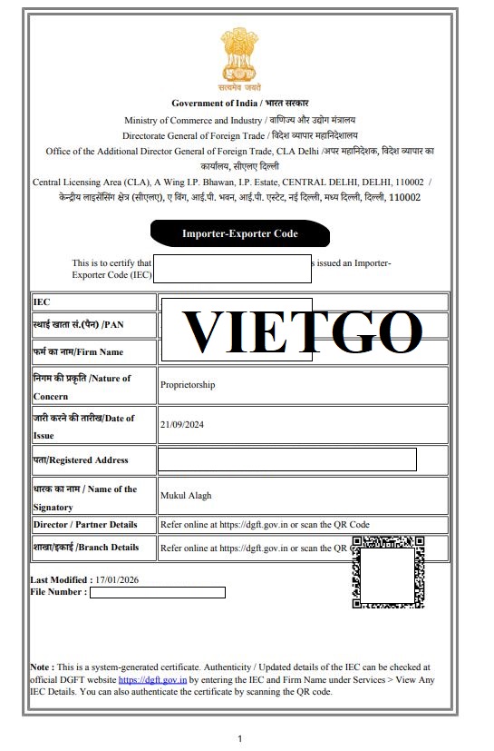 ██████████ là doanh nghiệp thương mại có trụ sở tại Ấn Độ, hoạt động hợp pháp trong lĩnh vực xuất nhập khẩu quốc tế và được cấp Importer–Exporter Code (IEC) bởi Directorate General of Foreign Trade (DGFT), Bộ Thương mại và Công nghiệp Ấn Độ. Việc sở hữu IEC thể hiện năng lực pháp lý đầy đủ của công ty trong các hoạt động giao thương xuyên biên giới.