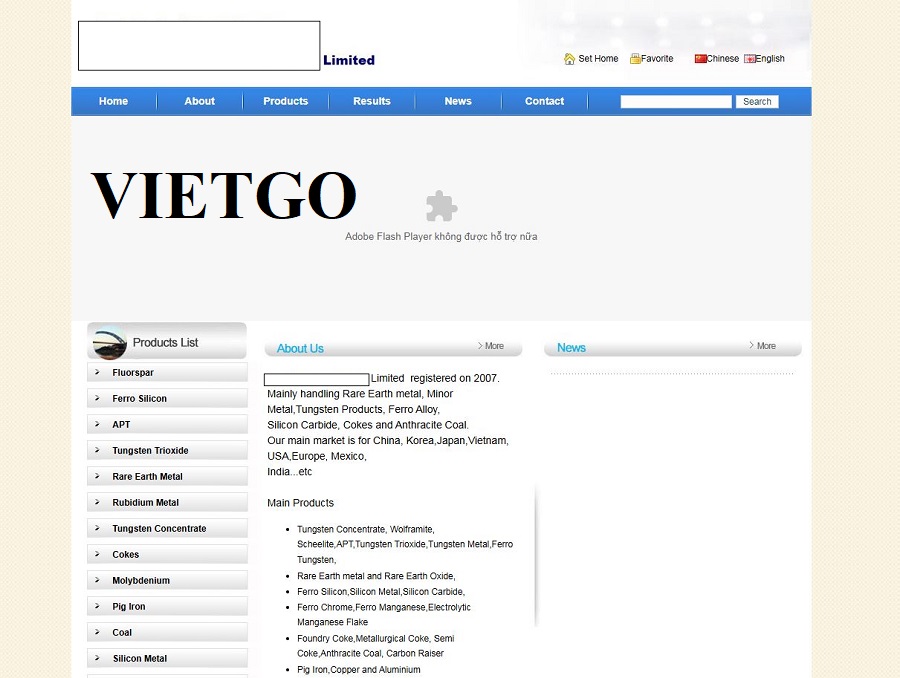 Ngoài kim loại hiếm, ██████████ Limited cũng là nhà cung cấp đáng tin cậy các sản phẩm Ferro Alloy và vật liệu carbon như Ferro Silicon, Silicon Metal, Silicon Carbide, Ferro Chrome, Ferro Manganese, Electrolytic Manganese Flake, cùng Foundry Coke, Metallurgical Coke, Semi Coke, Anthracite Coal và Carbon Raiser. Danh mục sản phẩm được hoàn thiện thêm với Pig Iron, Copper và Aluminium, đáp ứng nhu cầu đa dạng của ngành luyện kim và đúc.