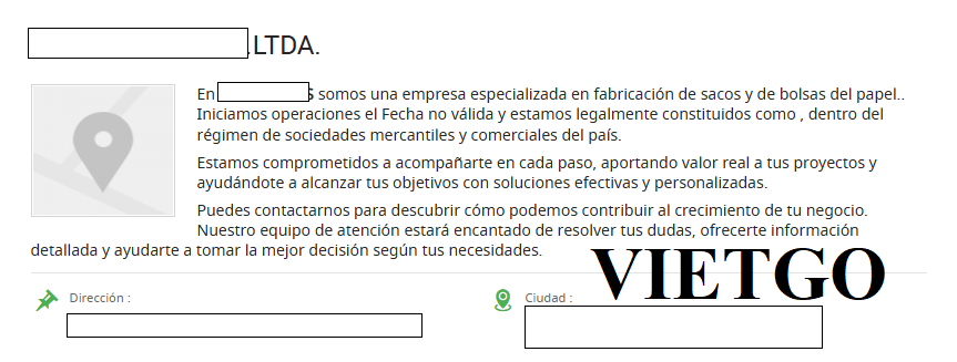 ████████████████████ là doanh nghiệp hoạt động trong lĩnh vực sản xuất và chế biến các sản phẩm giấy tại Ecuador, có trụ sở tại thành phố Quito. Công ty được đăng ký hợp pháp với mã số thuế RUC: ██████████, chuyên cung cấp các giải pháp về giấy và bao bì giấy phục vụ nhu cầu tiêu dùng và công nghiệp trong nước. Với định hướng phát triển ổn định, ████████████████████chú trọng đầu tư vào chất lượng nguyên liệu và quy trình sản xuất.