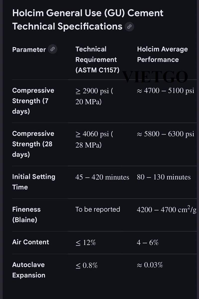 Yêu cầu: Xi măng Portland có chất lượng tốt