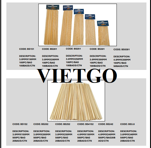 Vừa qua, VIETGO đã nhận được liên hệ từ ông Kerry – đại diện công ty ██████████ trao đổi về mong muốn tìm kiếm nhà cung cấp cho đơn hàng nhập khẩu xiên tre sang thị trường Úc.