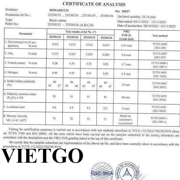 VIETGO xin gửi tới Quý nhà cung cấp thông tin về đơn hàng mủ cao su từ vị khách tiềm năng, ông Zong.