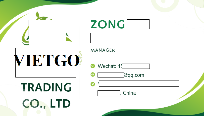Quý nhà cung cấp nếu có thể đáp ứng các yêu cầu từ ông Zong xin vui lòng liên hệ và gửi sản phẩm mẫu cũng như báo giá trong thời gian sớm nhất qua địa chỉ liên hệ mà chúng tôi cung cấp sau đây: