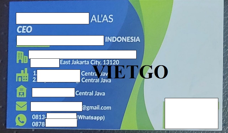 Trong quá trình trao đổi, vị khách hàng người Indonesia luôn cho thấy sự chân thành và lịch sự. Rất mong Quý nhà cung cấp quan tâm tới đơn hàng có thể sớm liên lạc và báo giá tới ông.