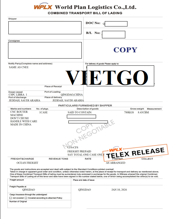 Hình ảnh bản vận đơn nhập khẩu của công ty vị khách hàng từ Trung Quốc