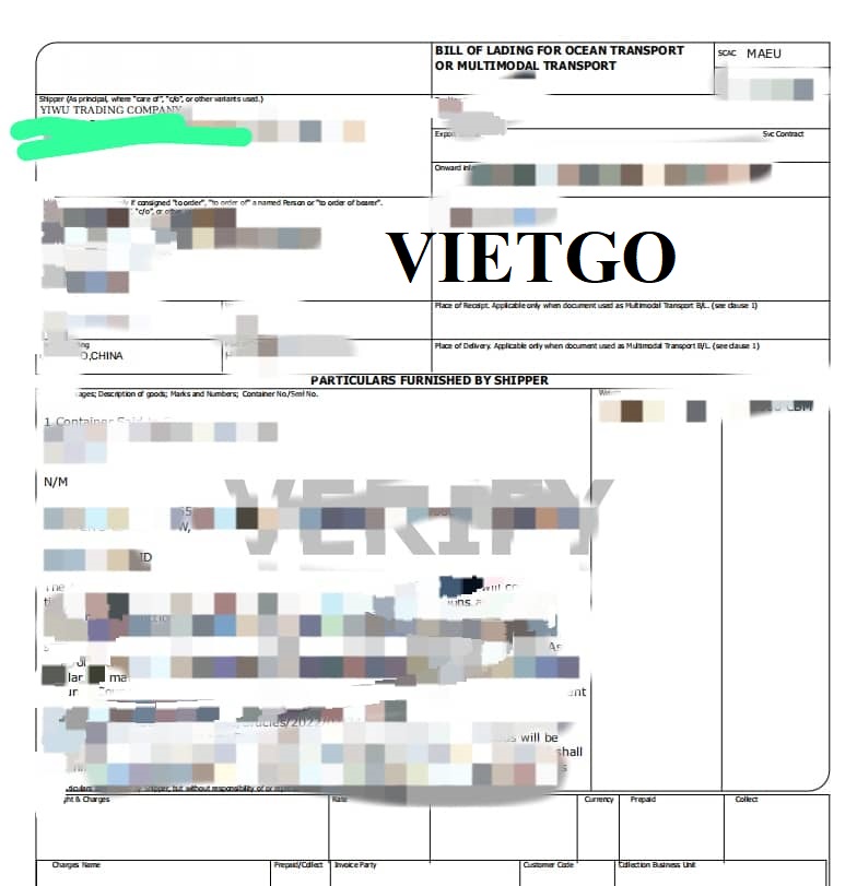 Hình ảnh vận đơn xuất khẩu của công ty vị khách hàng