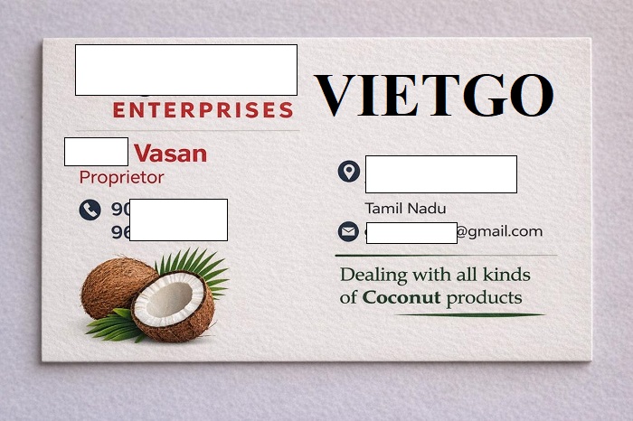Vừa qua, VIETGO đã nhận được thông tin từ ông Vasan về đơn hàng nhập khẩu than dừa, phục vụ cho nhu cầu kinh doanh của công ty tại thị trường Ấn Độ. Ông Vasan là đại diện đến từ ██████████, một doanh nghiệp có trụ sở tại ██████████, Ấn Độ. ██████████ định hướng phát triển như một đơn vị thương mại uy tín, chuyên cung cấp và phân phối các sản phẩm có nguồn gốc từ dừa ra thị trường trong nước và quốc tế. Với lợi thế nằm tại khu vực có nguồn nguyên liệu dừa phong phú, công ty tập trung vào việc khai thác, chế biến và kinh doanh đa dạng các dòng sản phẩm từ dừa. Các sản phẩm từ dừa của công ty thường được ứng dụng trong nhiều lĩnh vực như năng lượng sạch, mụn dừa, xơ dừa làm giá thể trồng cây, than hoạt tính, cũng như dầu dừa, sản phẩm chế biến.
