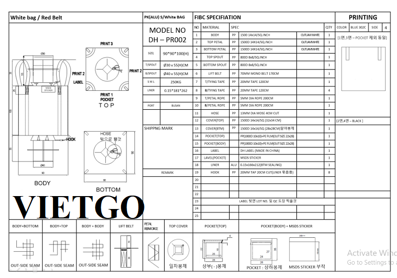 VIETGO xin gửi tới Quý nhà cung cấp đơn hàng bao jumbo đến từ ông Taehoo.