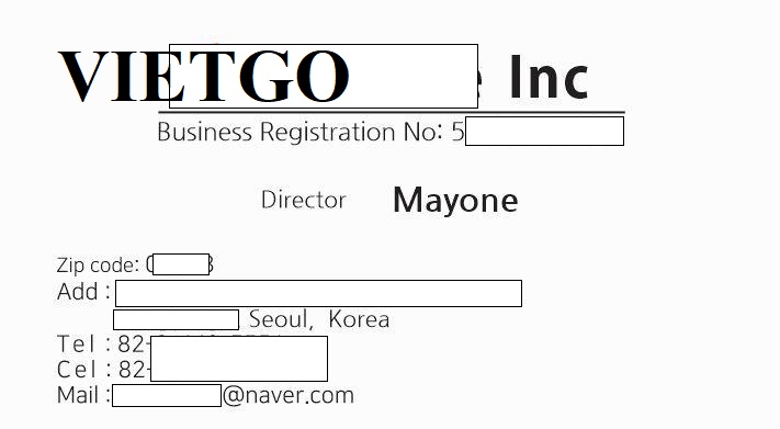 Mr. Mayone là đại diện của công ty ██████████, một doanh nghiệp có trụ sở tại ██████████ Seoul, Hàn Quốc. Công ty được đăng ký kinh doanh với mã số ██████████, hoạt động trong lĩnh vực thương mại và cung ứng các sản phẩm phục vụ chuỗi logistics và lưu trữ hàng hóa. Với vị trí tại Seoul – trung tâm kinh tế lớn của Hàn Quốc, ██████████ có nhiều lợi thế trong việc kết nối nguồn hàng và mở rộng hợp tác quốc tế.