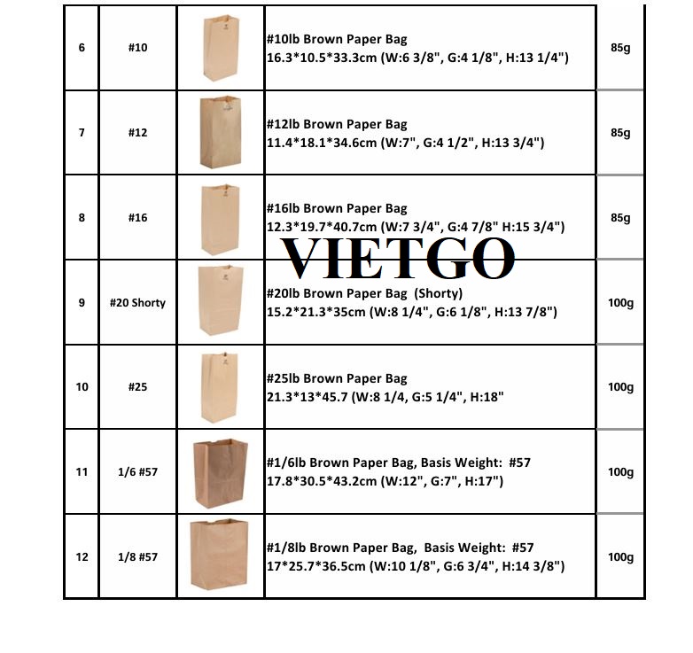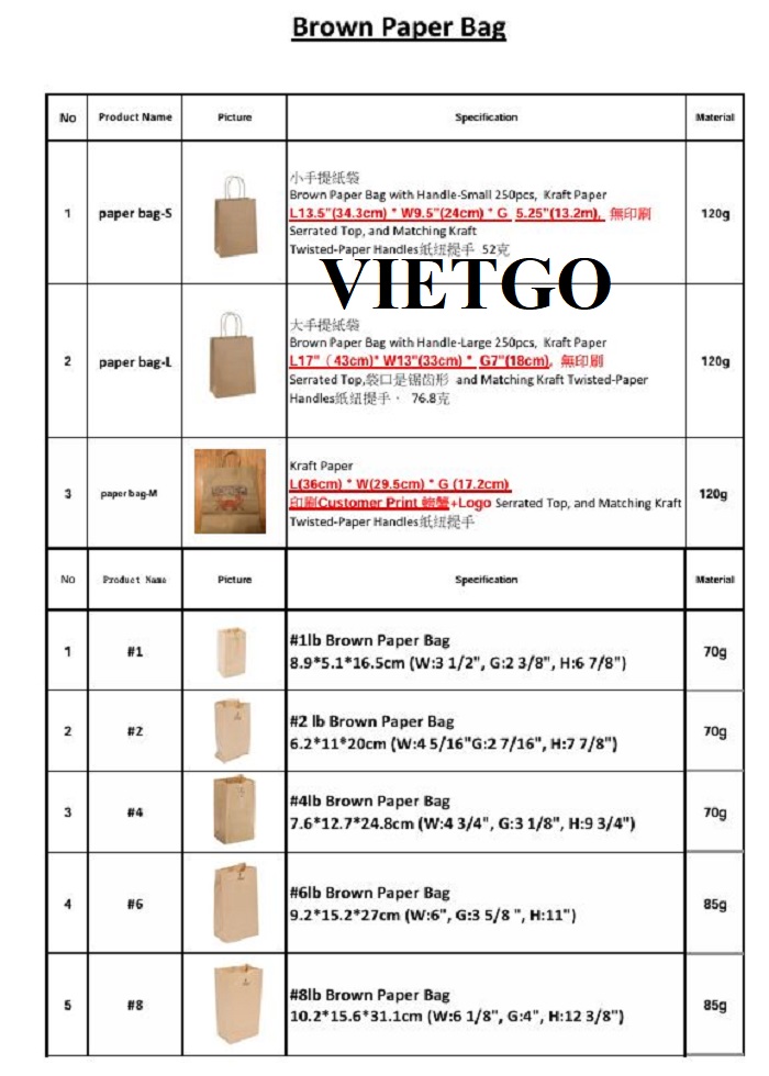 Bà Lisa đang cần nhập khẩu túi giấy cho dự án của công ty mình.