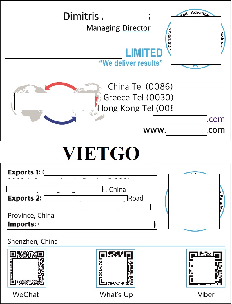 Ông Dimitris hiện đang làm việc tại ██████████, là một công ty có trụ sở tại Hồng Kông, có văn phòng tại Trung Quốc và một văn phòng đại diện tại Hy Lạp ở châu Âu. ██████████ tham gia vào lĩnh vực sản xuất OEM và thực hiện tất cả các loại dự án sản xuất ở Trung Quốc, từ túi xách đến các sản phẩm công nghệ cao. Hiện nay, chúng tôi đang là nhà phân phối và được làm việc với các nhà sản xuất Trung Quốc tốt nhất, giúp quảng bá sản phẩm của họ sang châu Âu, thông qua các thỏa thuận độc quyền để đảm bảo mức độ hợp tác cao nhất có thể. Ngoài ra, ██████████ cũng đang mở rộng nguồn cung cấp để đa dạng hóa sản phẩm của mình sang nông sản.